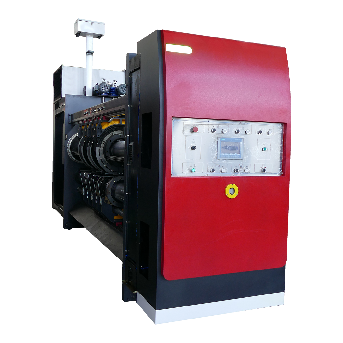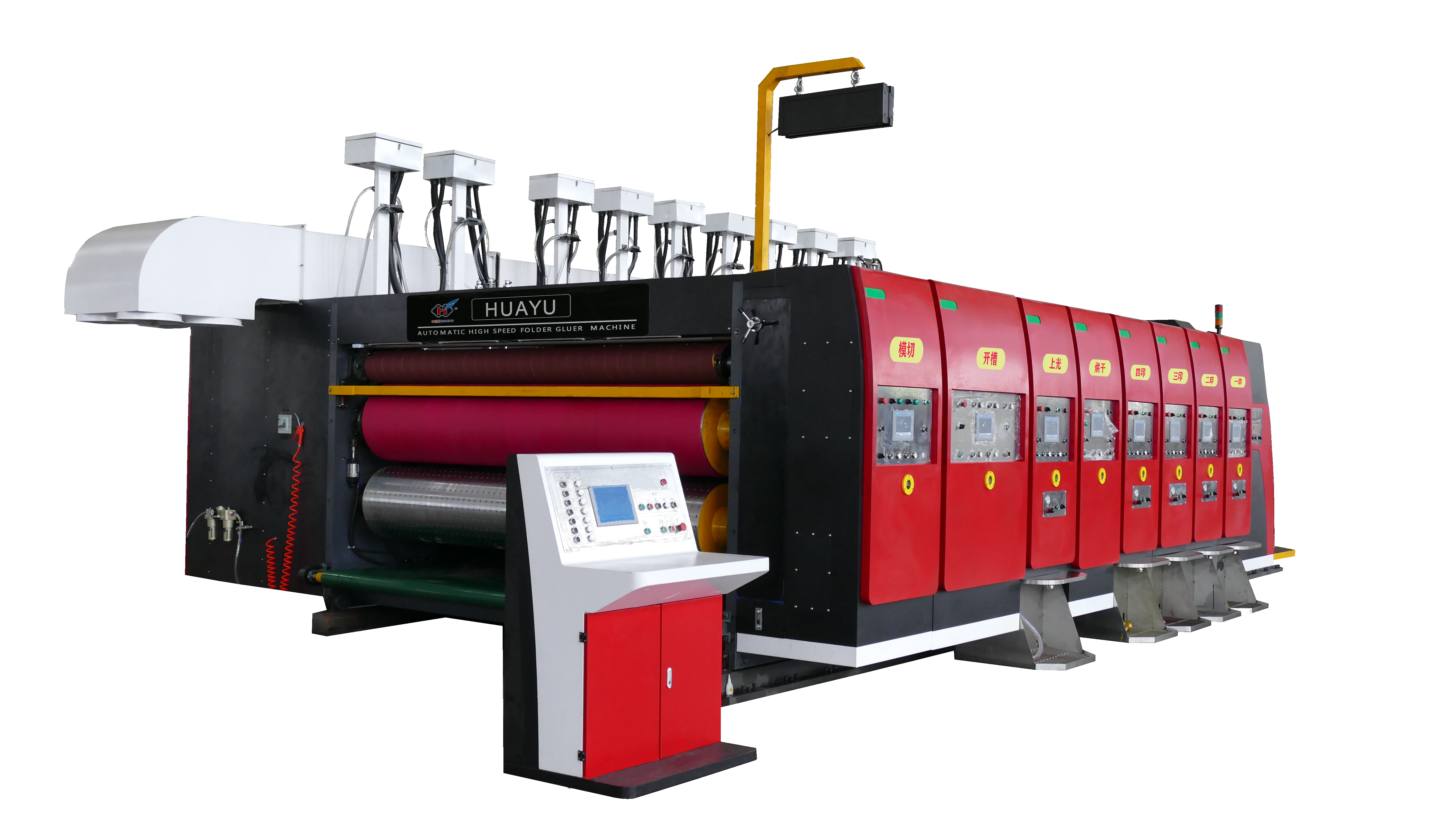 • Die volledig outomatiese produksiebeheerstelsel benodig slegs die invoer van die bestellingsgrootte-inligting op die aanraakscherm in die onafhanklike bedieningspaneel. Die pAPIERVOERINGSEENHEID , drukwerk uni t, en snywerk eenheid pas outomaties alle gaping, as-omtrek en ander parameters akkuraat en betroubaar aan, sonder enige menslike tussenkoms, en verbeter die produksie-effektiwiteit van die onderneming.